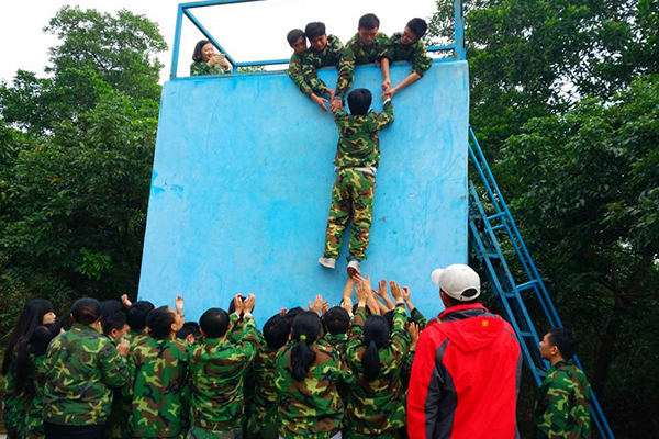時(shí)間。大家一致推選營(yíng)銷副總擔(dān)任總司令,并制定出在1個(gè)小時(shí)內(nèi)完成的目標(biāo)。項(xiàng)目是要求每位成員都要翻越4米多高的光滑墻面,且不能
